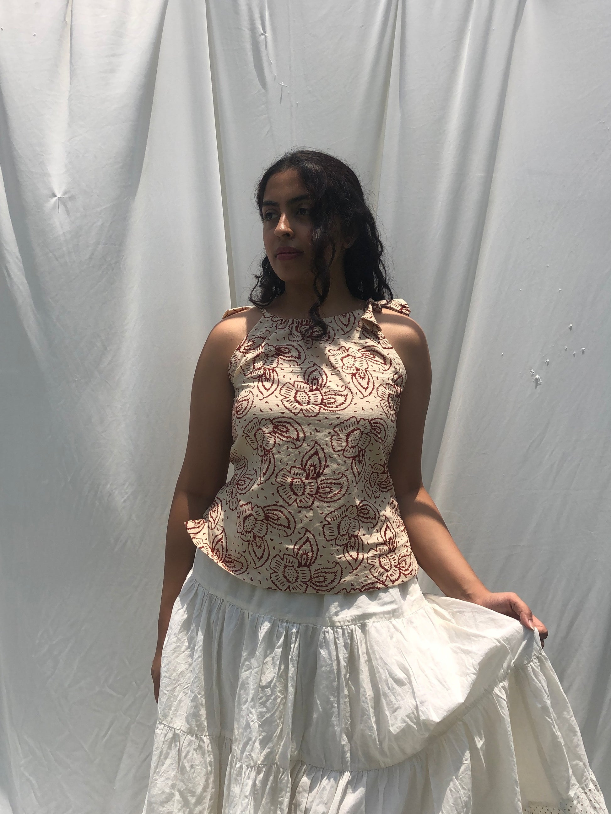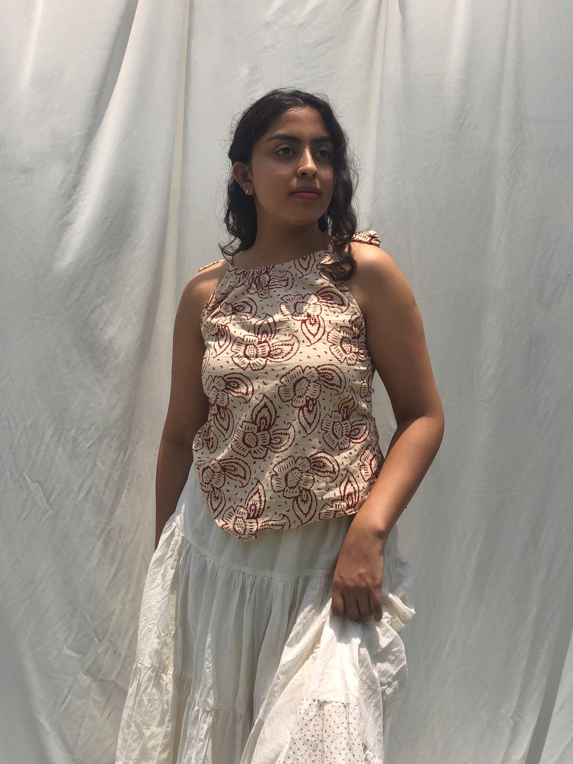 Update your summer wardrobe with our handblockprinted cotton halter top! The halter neck design provides a flattering fit, perfect for any body type. Stay stylish and cool in this versatile addition to your closet.