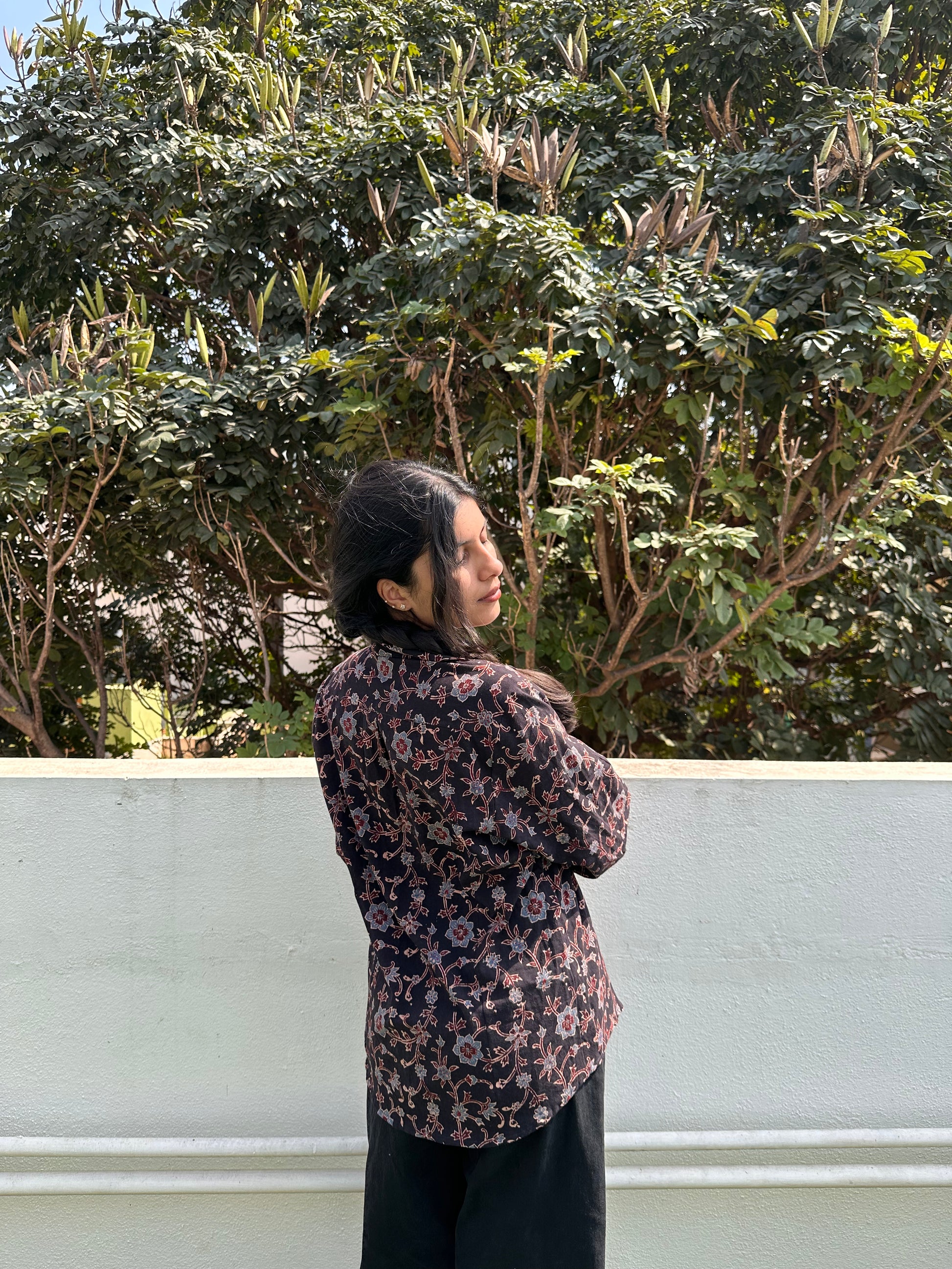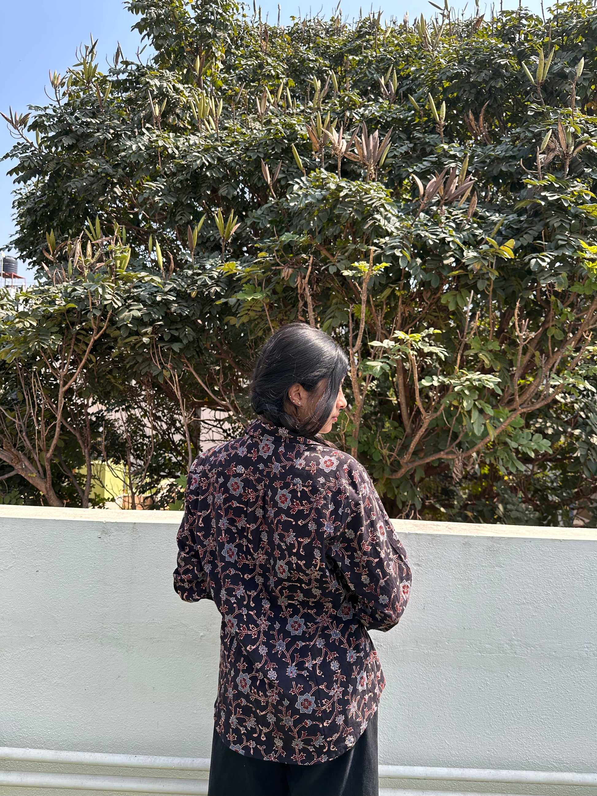 Effortlessly elevate your style with our black ajrakh shirt. Handblock printed with a traditional ajrakh design, this shirt features long sleeves for extra warmth and comfort. The perfect addition to your wardrobe, this shirt will have you looking and feeling your best wherever you go.