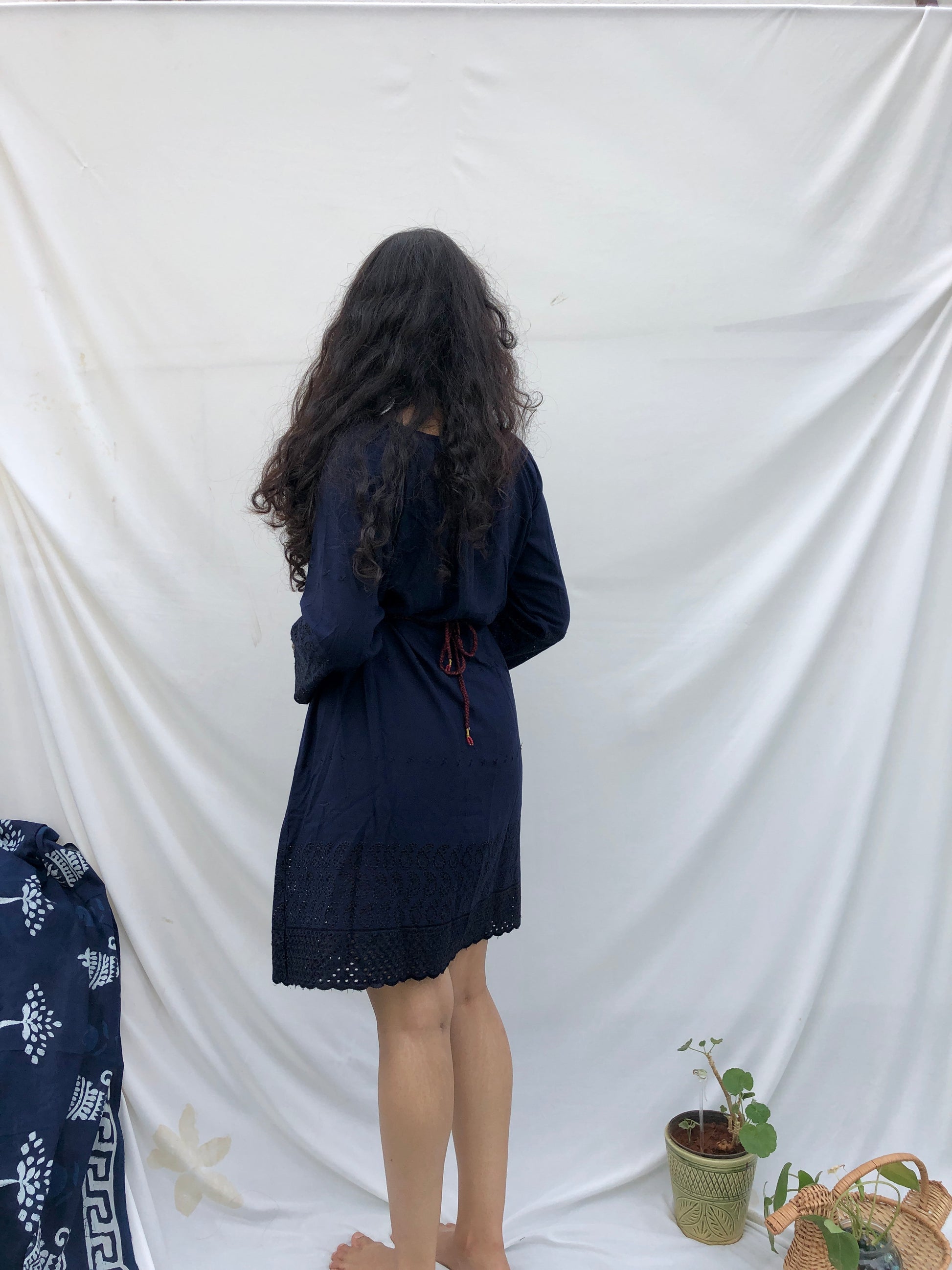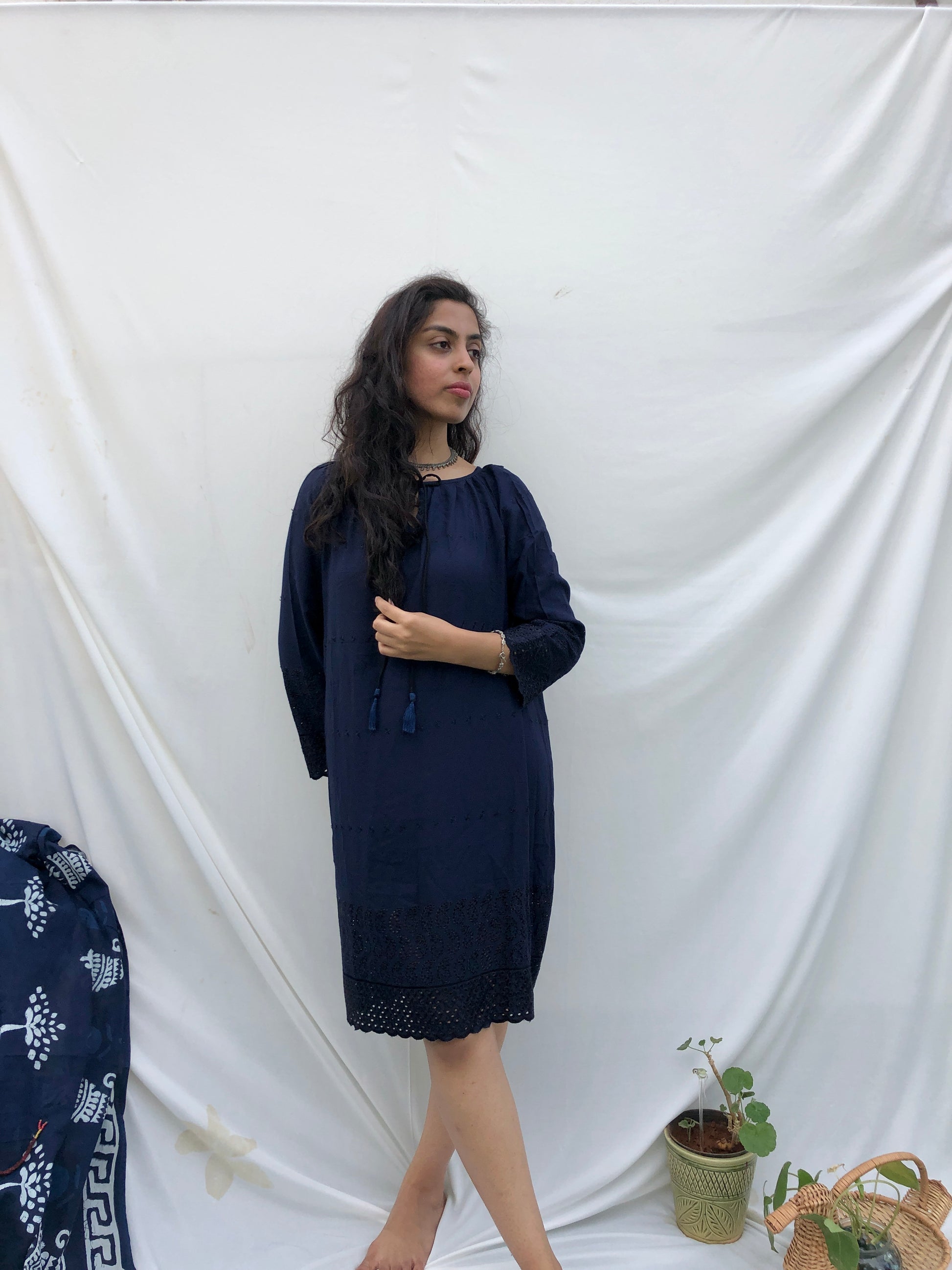 Indulge in the luxurious sophistication of our Blue Hakoba dress. Crafted from fine cotton and featuring a rich navy blue hue, this knee-length dress exudes elegance. Perfect for any occasion, it's the epitome of tasteful, exclusive style. Make a statement with the Blue Hakoba dress.