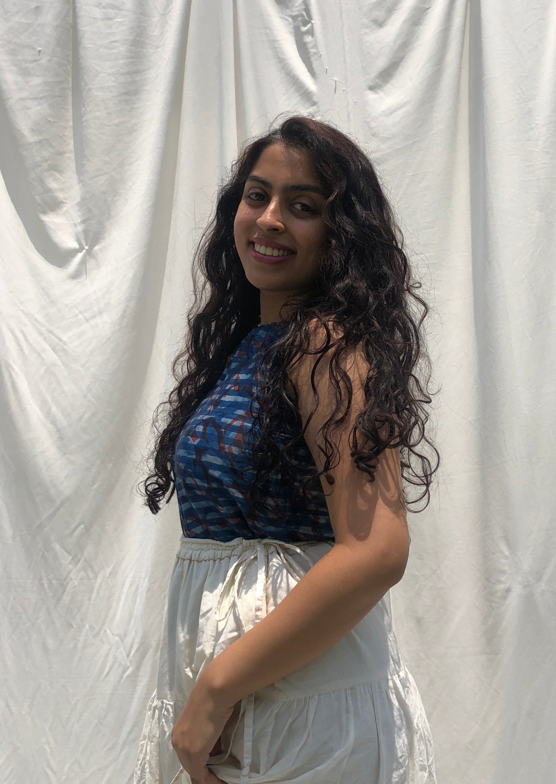 Update your summer wardrobe with our handblockprinted modal silk halter top! The halter neck design provides a flattering fit, perfect for any body type. Stay stylish and cool in this versatile addition to your closet.
