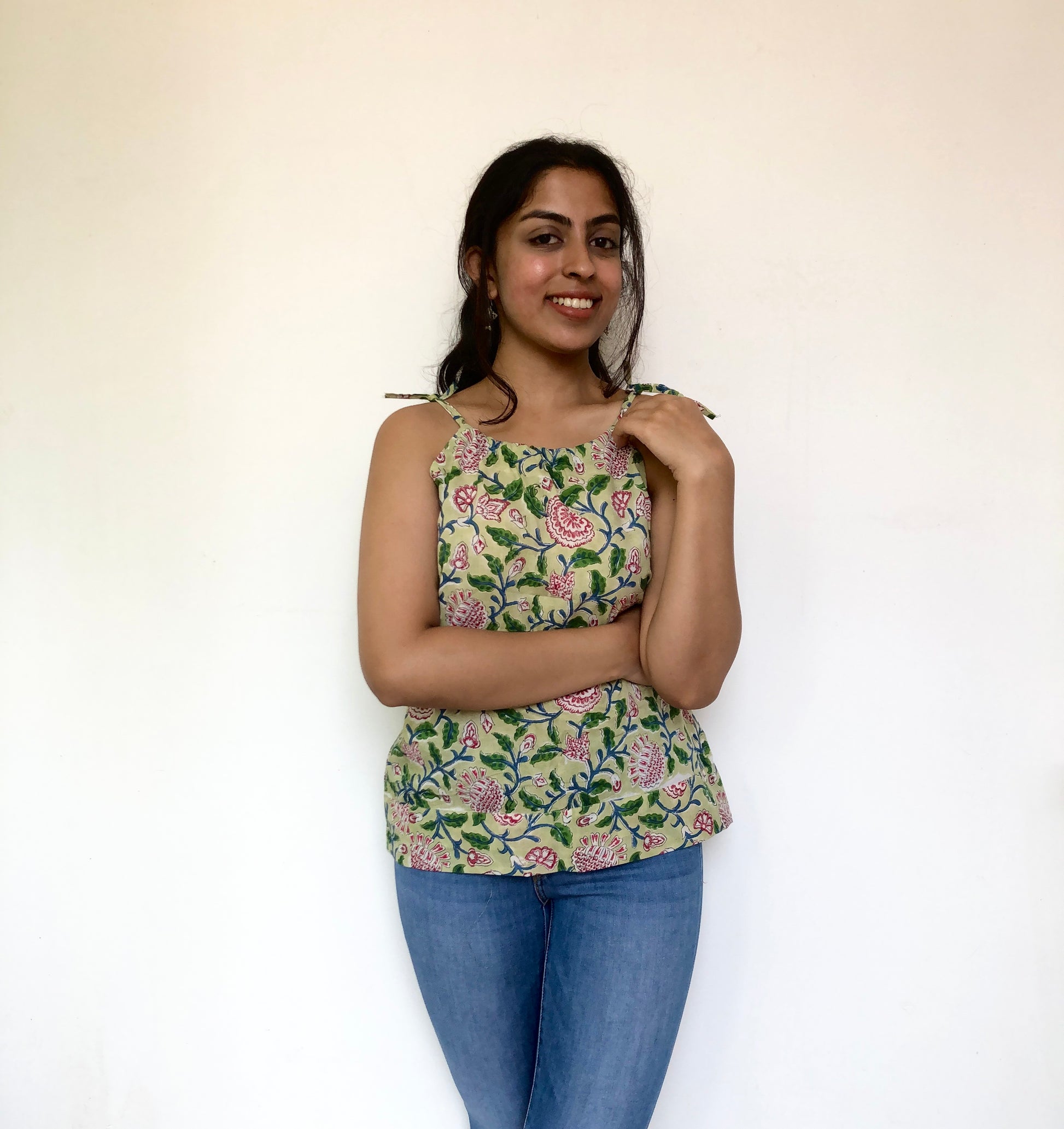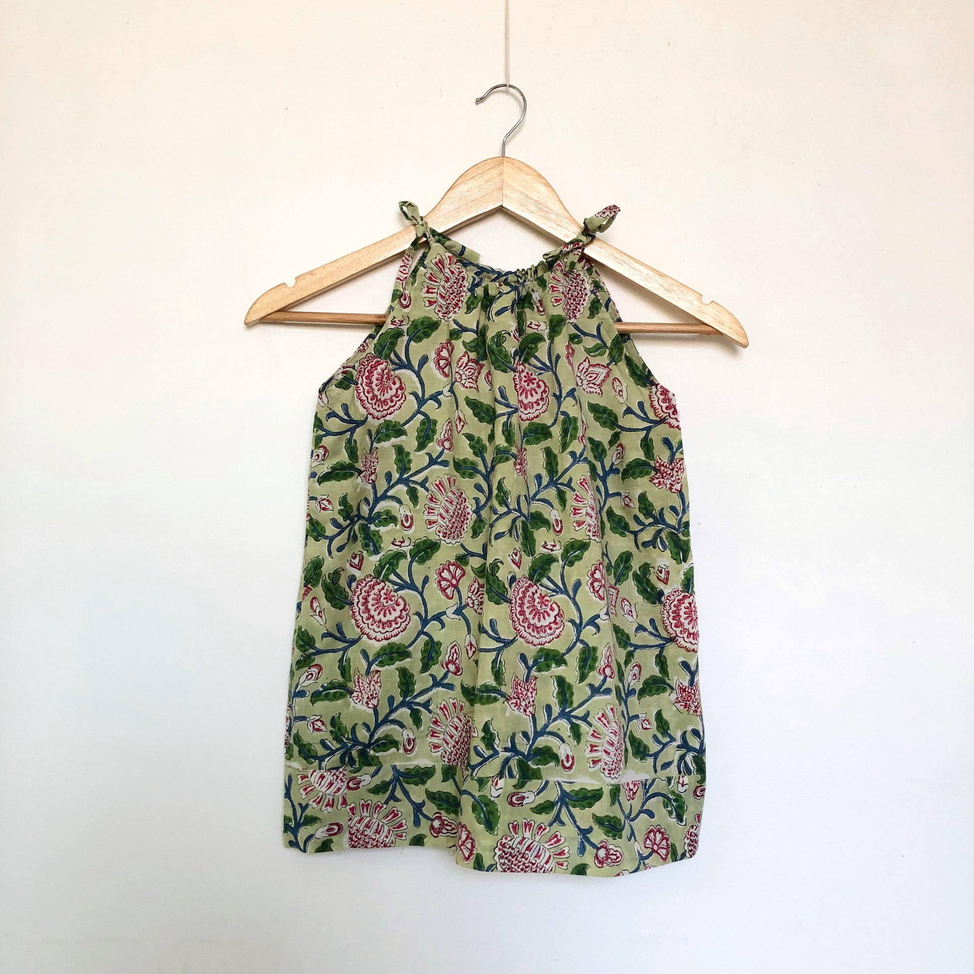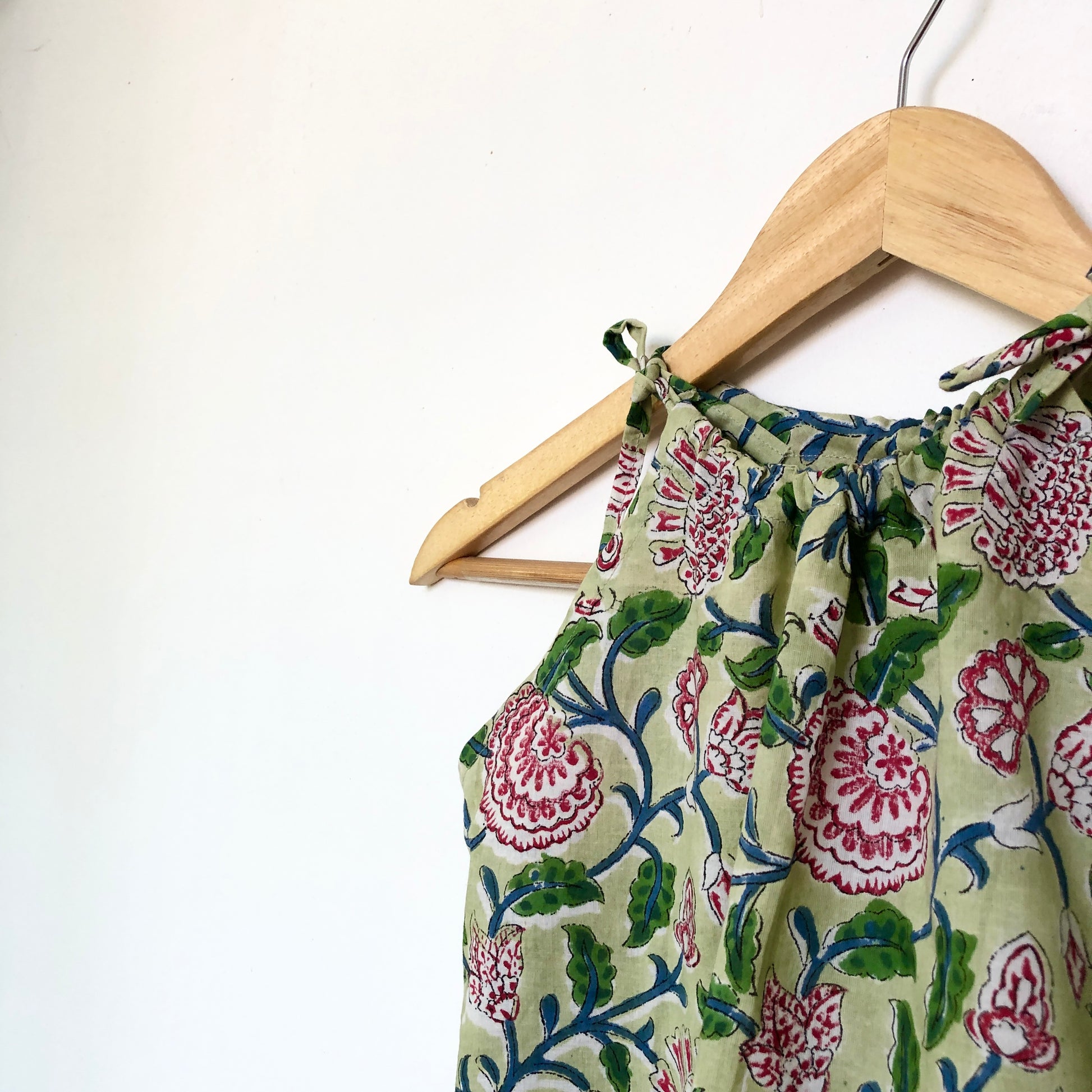 Update your summer wardrobe with our handblockprinted green halter top! The halter neck design provides a flattering fit, perfect for any body type. Stay stylish and cool in this versatile addition to your closet.