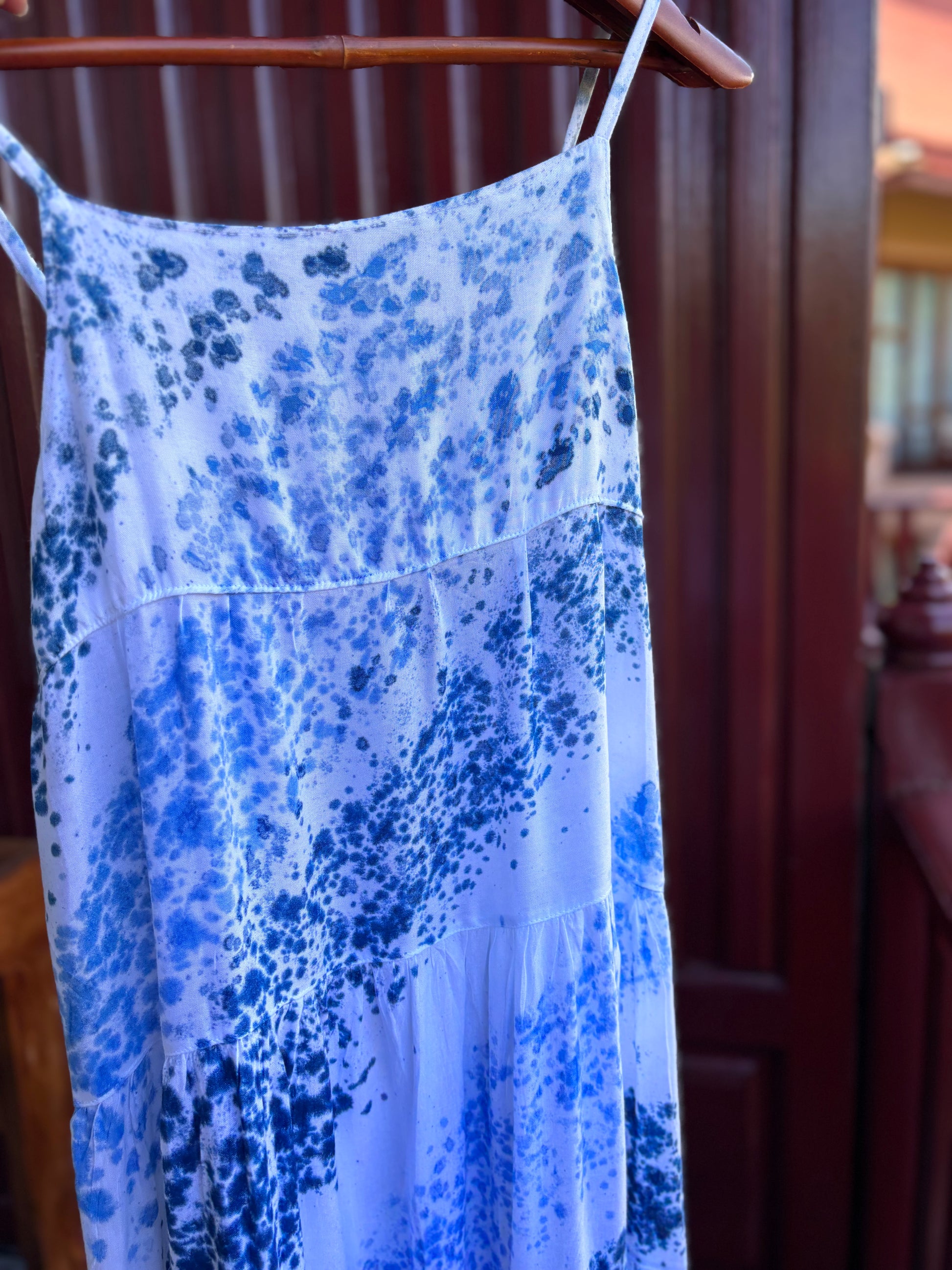 Slip into this stylish and playful Indigo tie dye dress! Made with soft cotton, handblockprint and strappy, this dress is perfect for warm weather. Stand out with its unique indigo design and bring some fun to your wardrobe!
