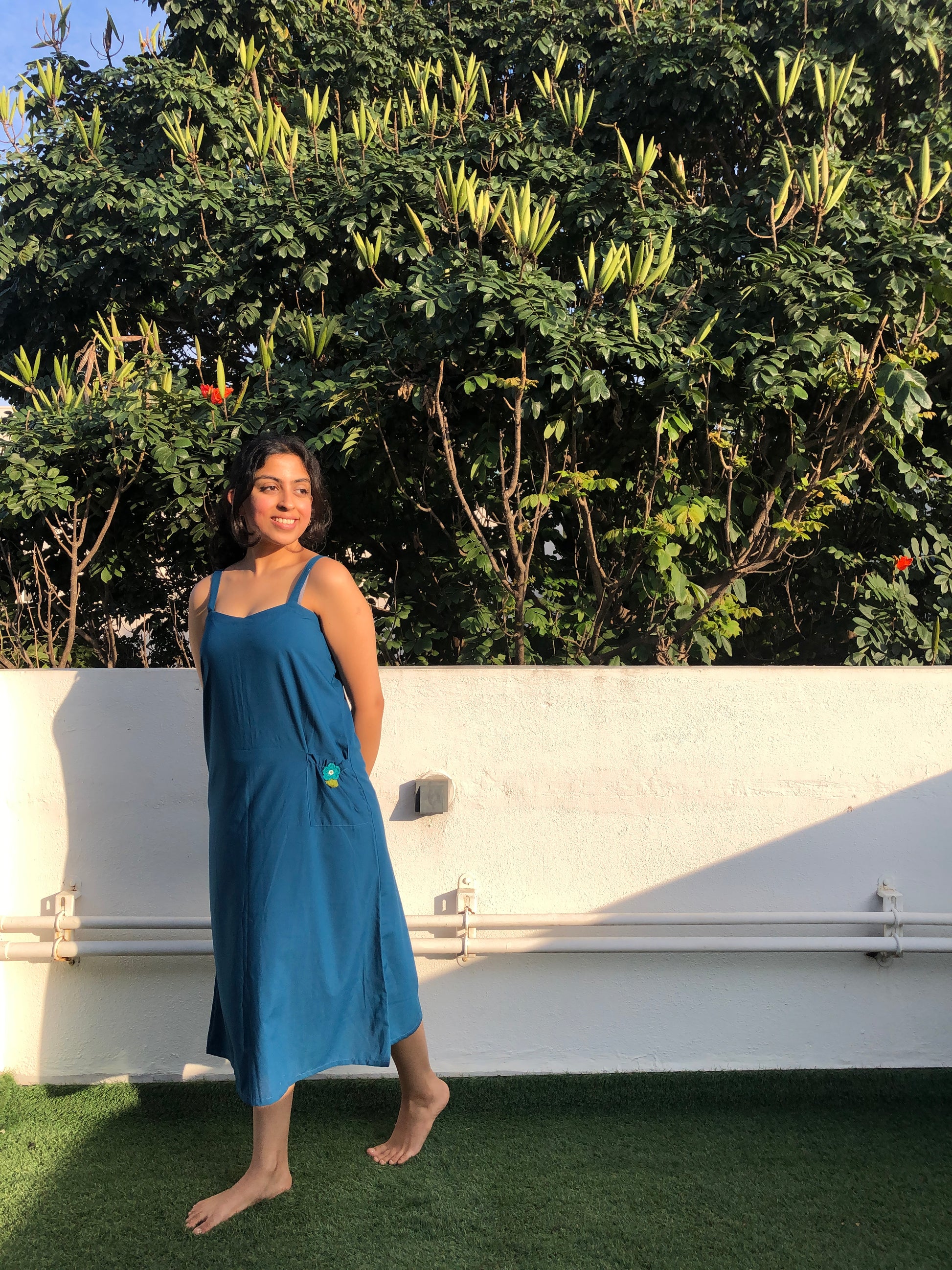 Indulge in the luxurious Maria dress, crafted for the sophisticated fashionista. Featuring elegant spaghetti straps and a stunning navy blue hue, this dress is the perfect addition to your summer wardrobe. Elevate your style with this exclusive piece, perfect for any occasion.